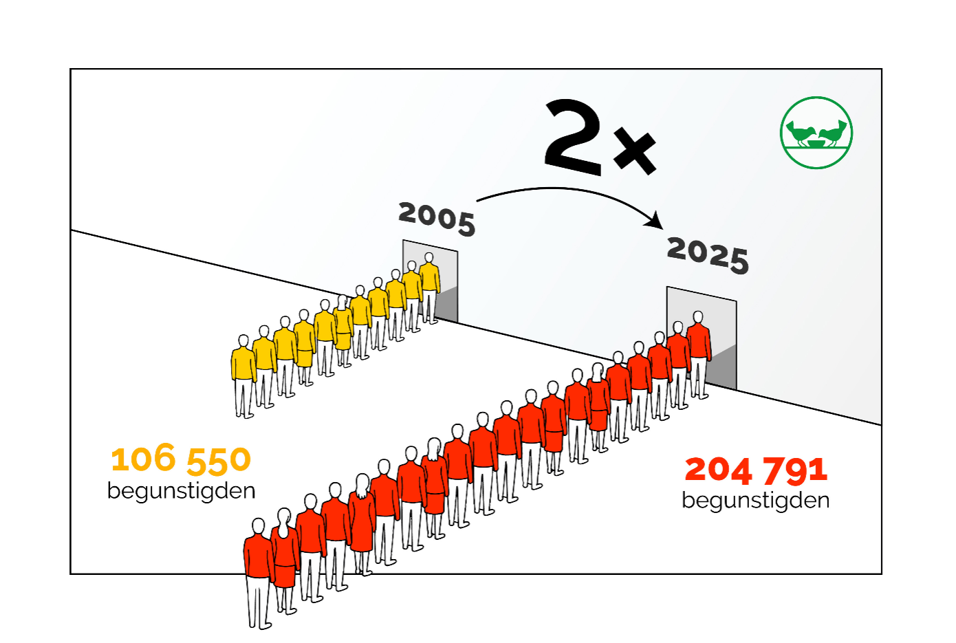 Voor de komende twee jaar wordt een sterke stijging van het aantal klanten voor noodhulp verwacht als gevolg van beleidsbeslissingen, o.a. de beperking in de tijd van werkloosheidsuitkering. Een daling van de middelen voor de aankoop van voeding gaat gepaard met een stijging van de vraag naar voedselnoodhulp. De Voedselbanken worden geconfronteerd met een schaarbeweging. In dat scenario komt de voedselnoodhulp onder flinke druk te staan met een mogelijke terugval naar gemiddeld drie tot vier maaltijdequivalenten per week per persoon. Dit is een zorgwekkend vooruitzicht voor een systeem dat vandaag al op zijn limieten botst.